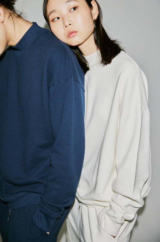 Mock Neck Pullover / Navy